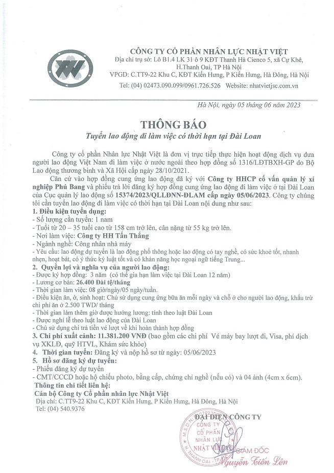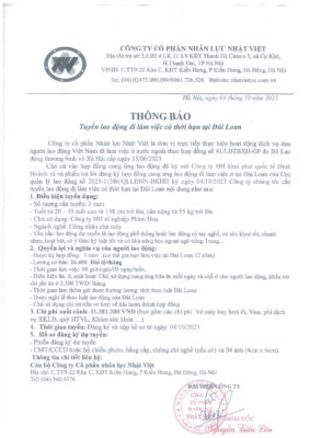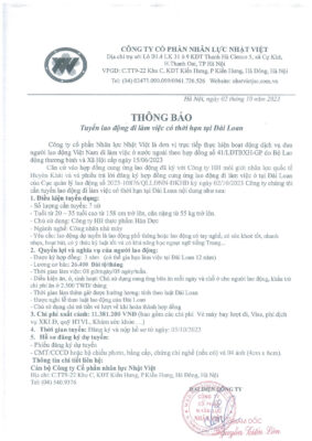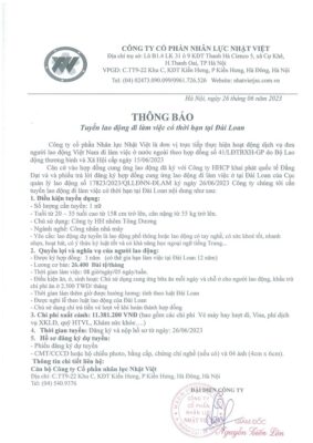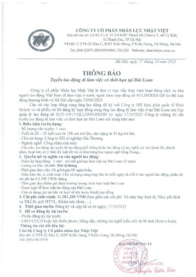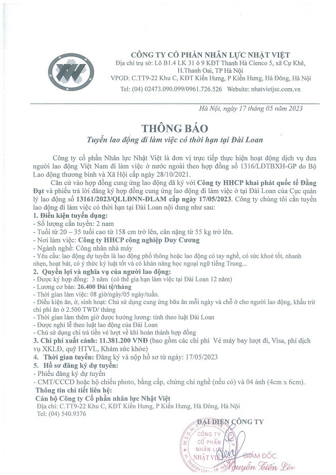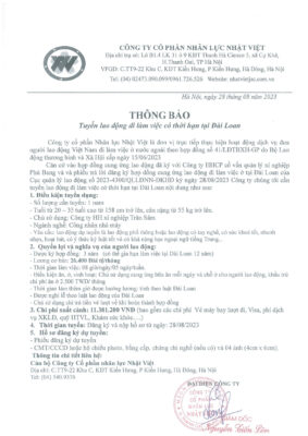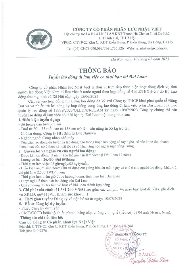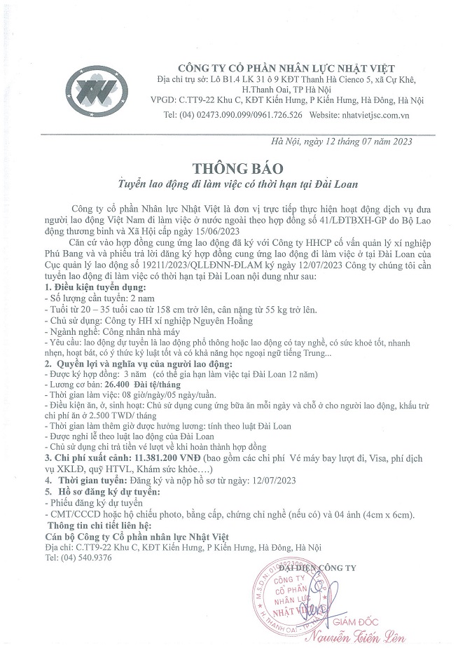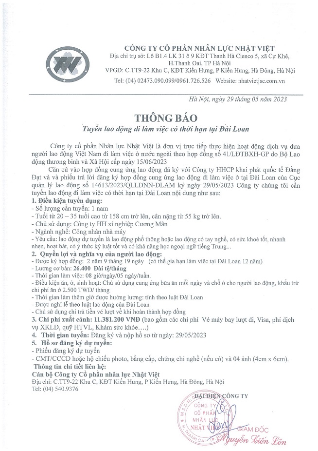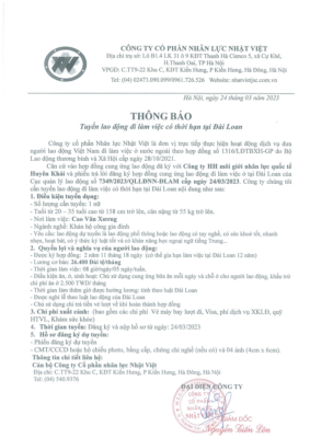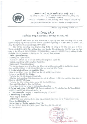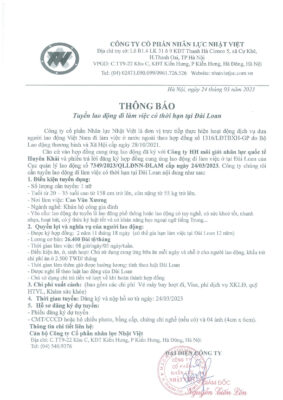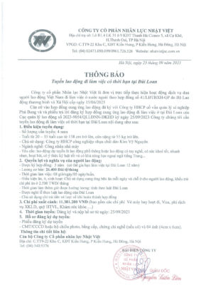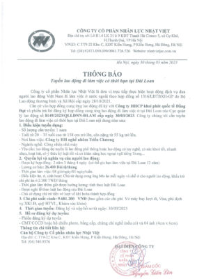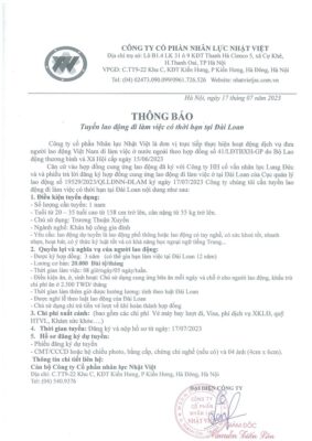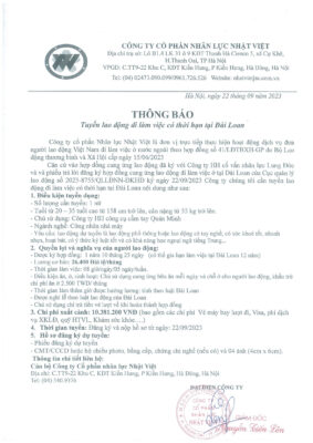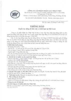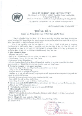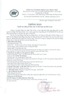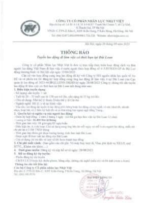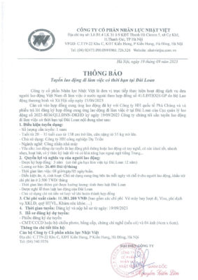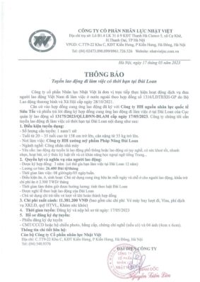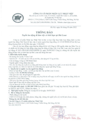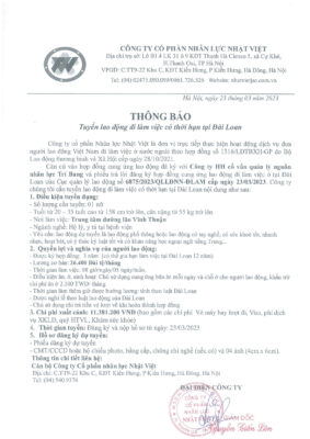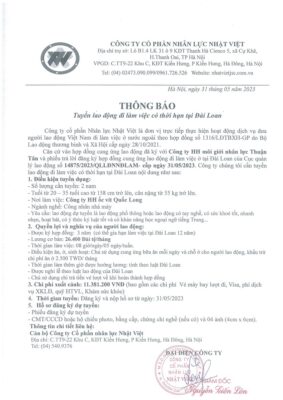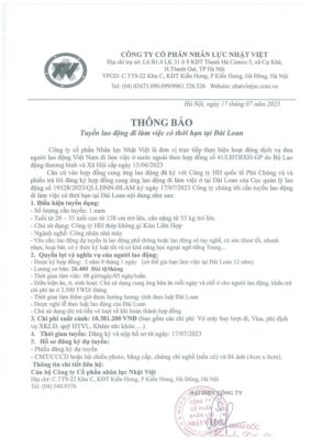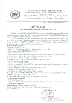 Đơn hàng XKLĐ Đài Loan