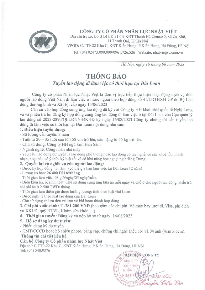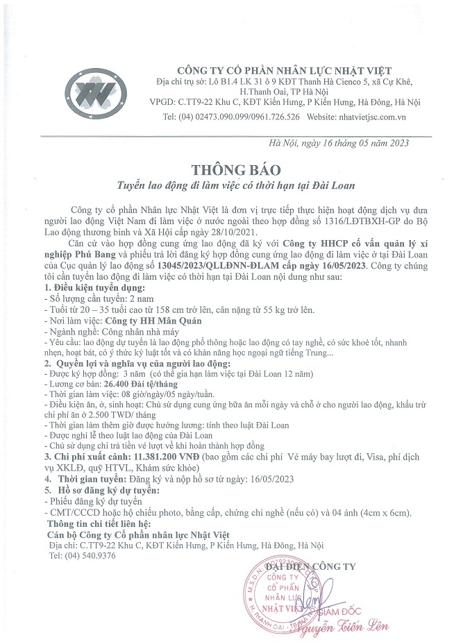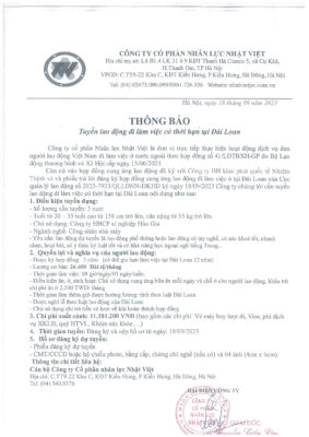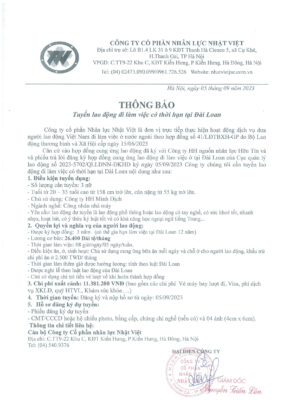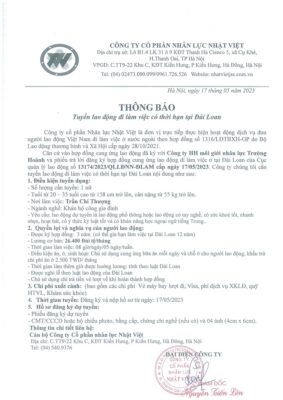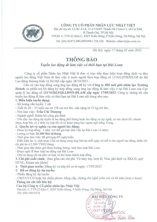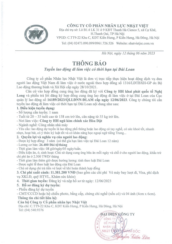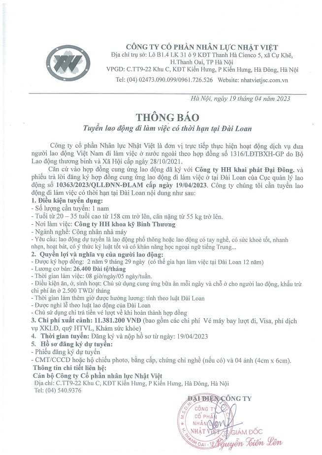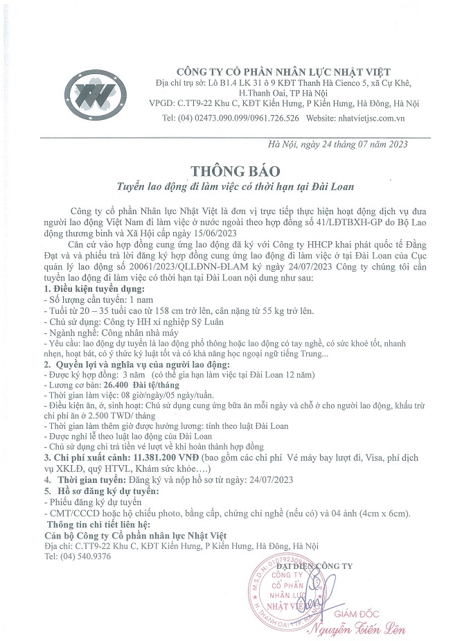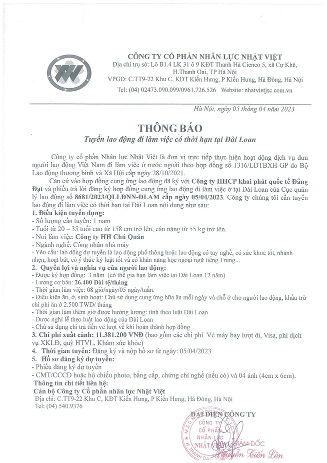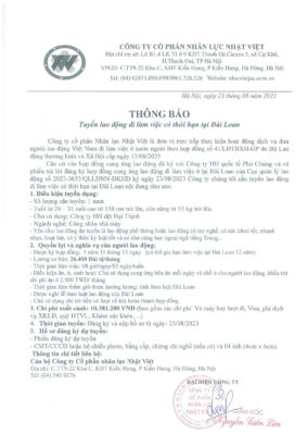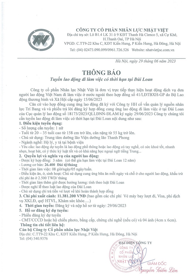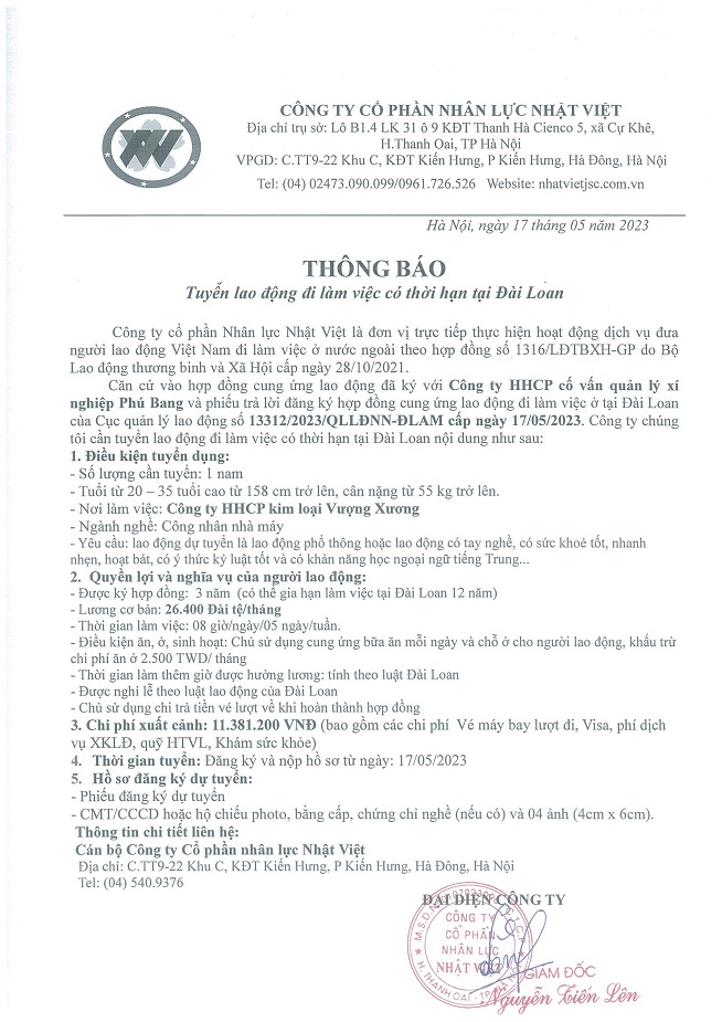 Đơn hàng XKLĐ Đài Loan