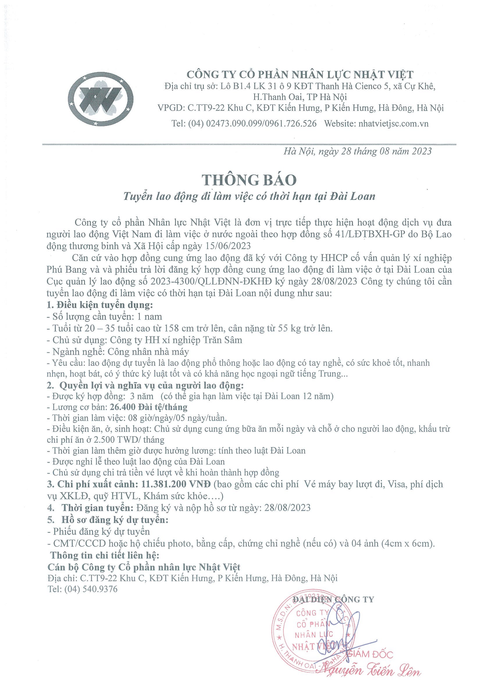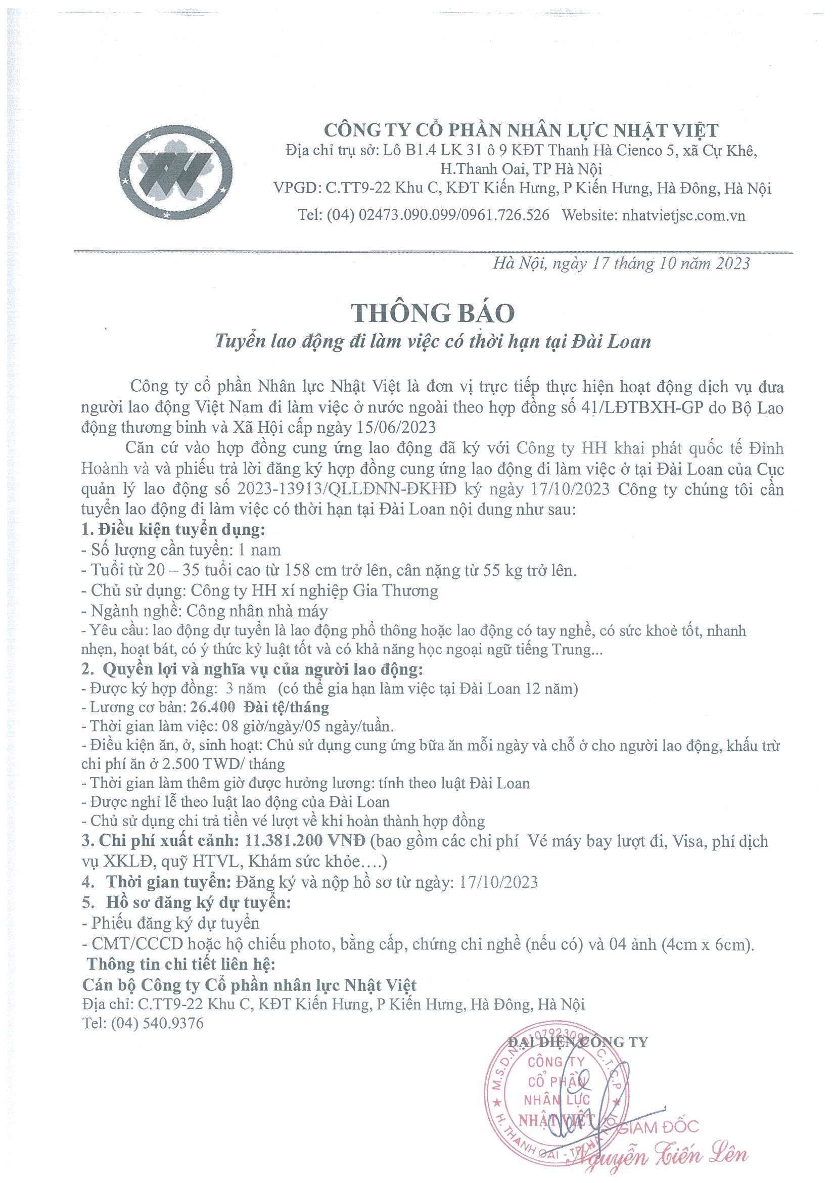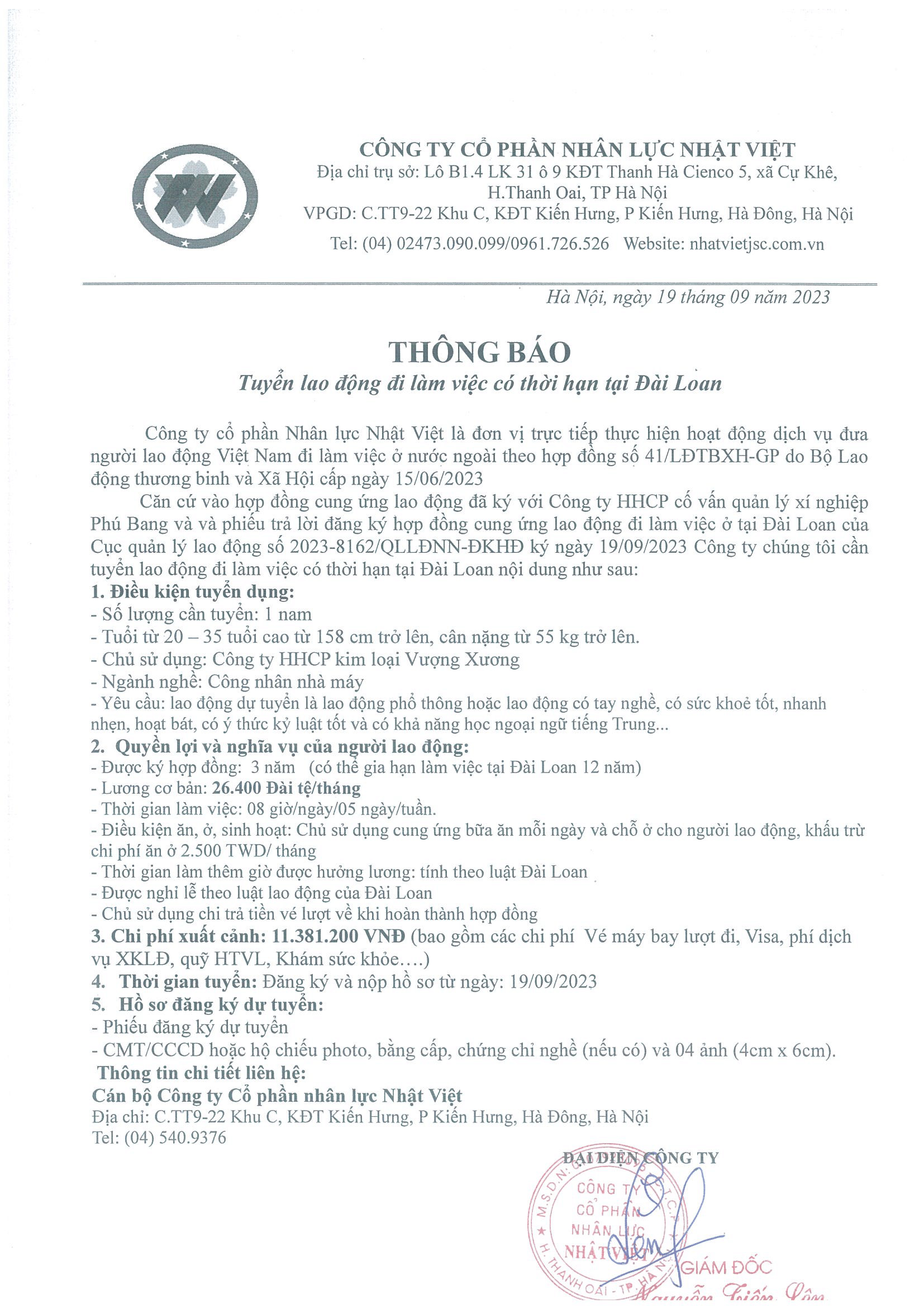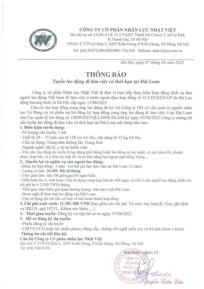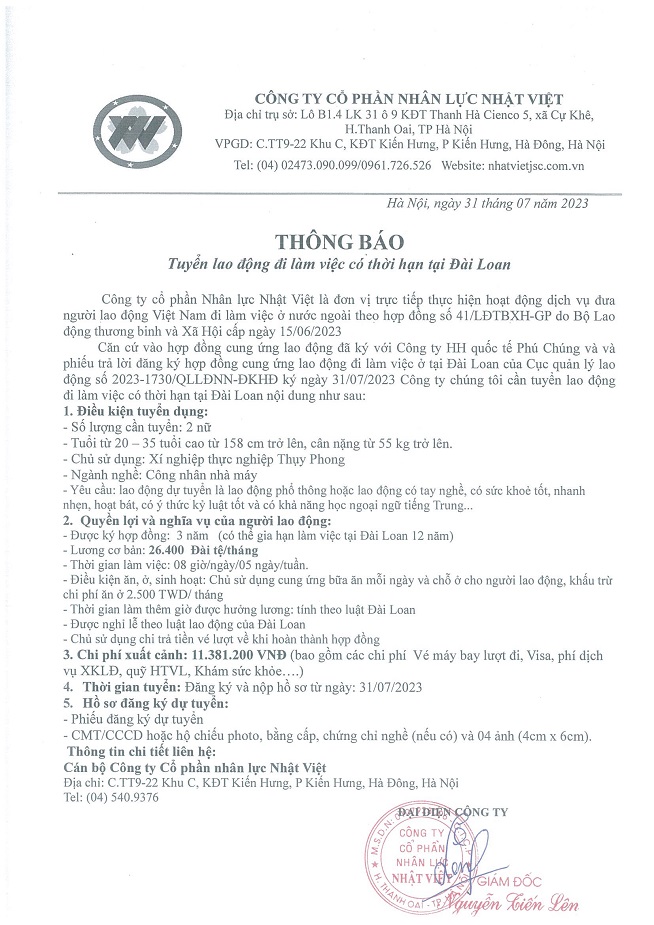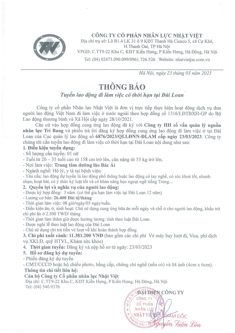 Đơn hàng XKLĐ Đài Loan