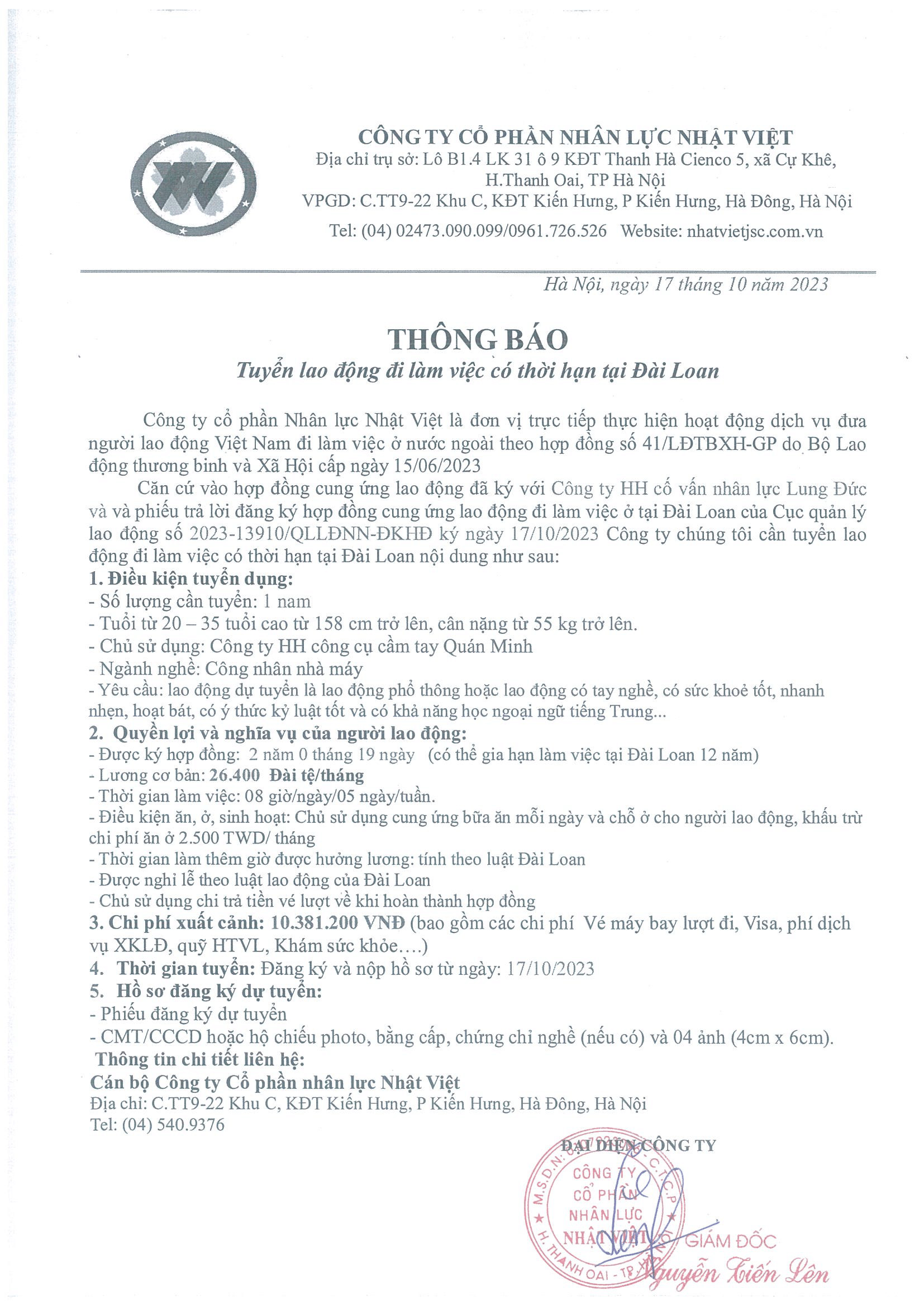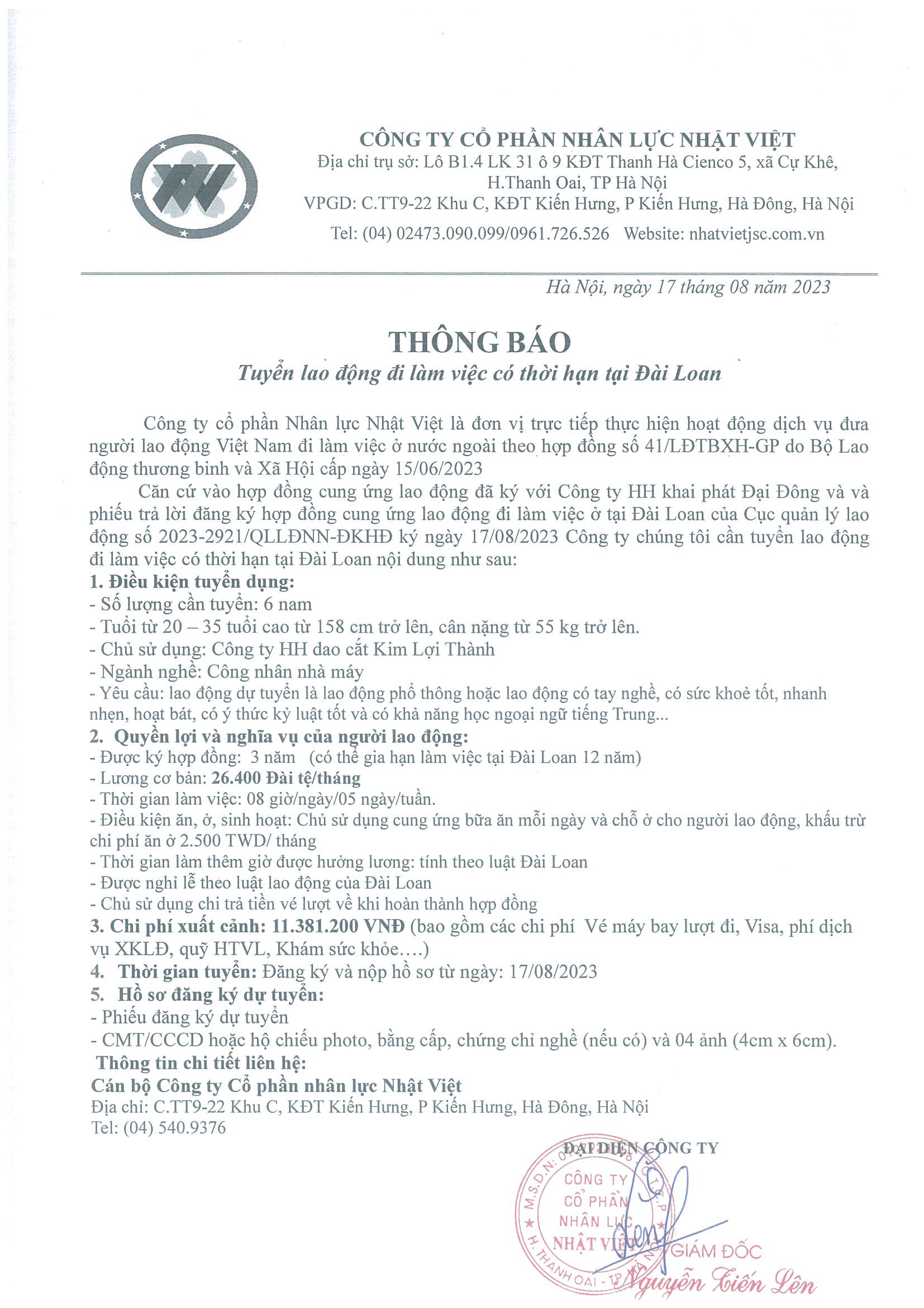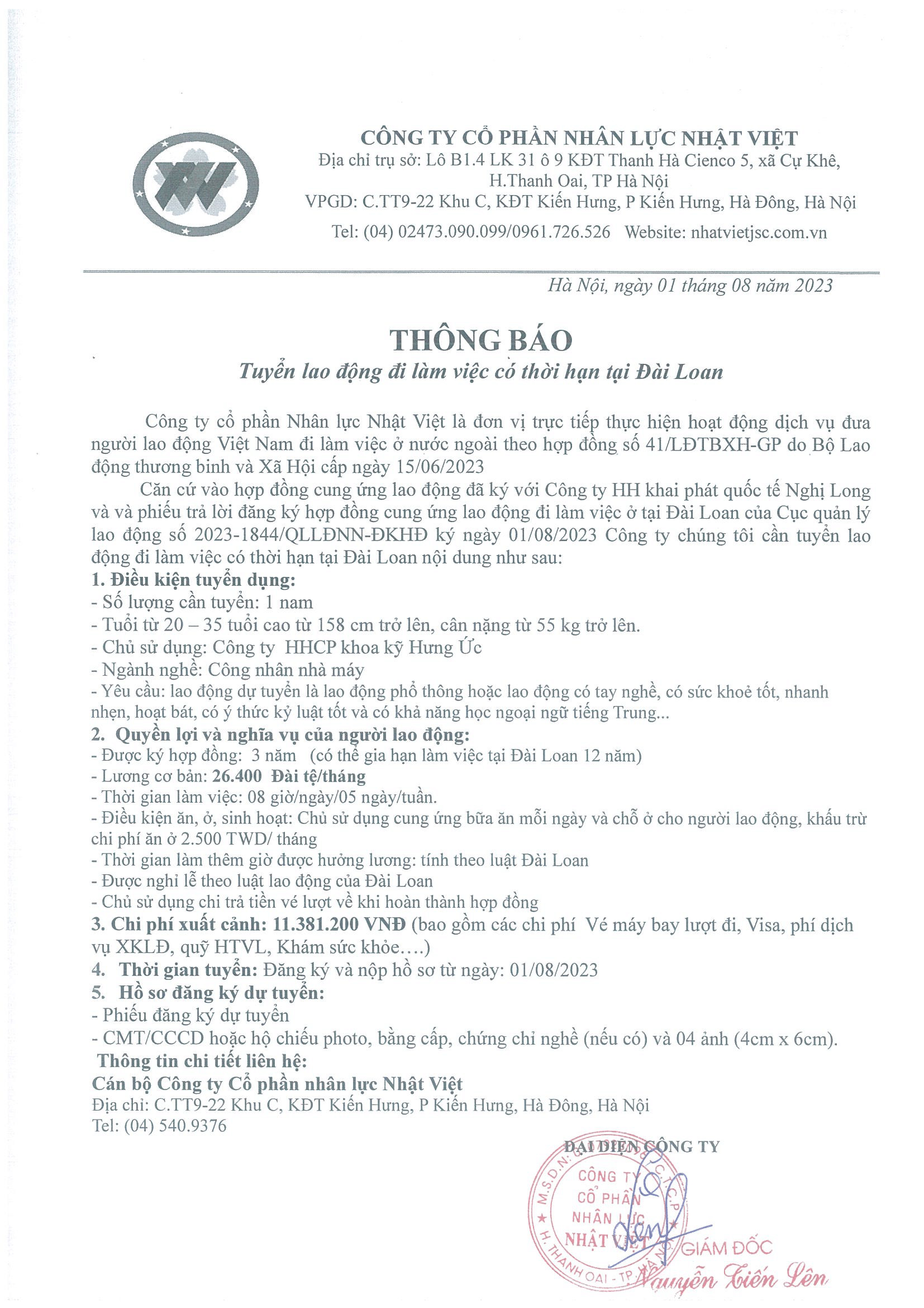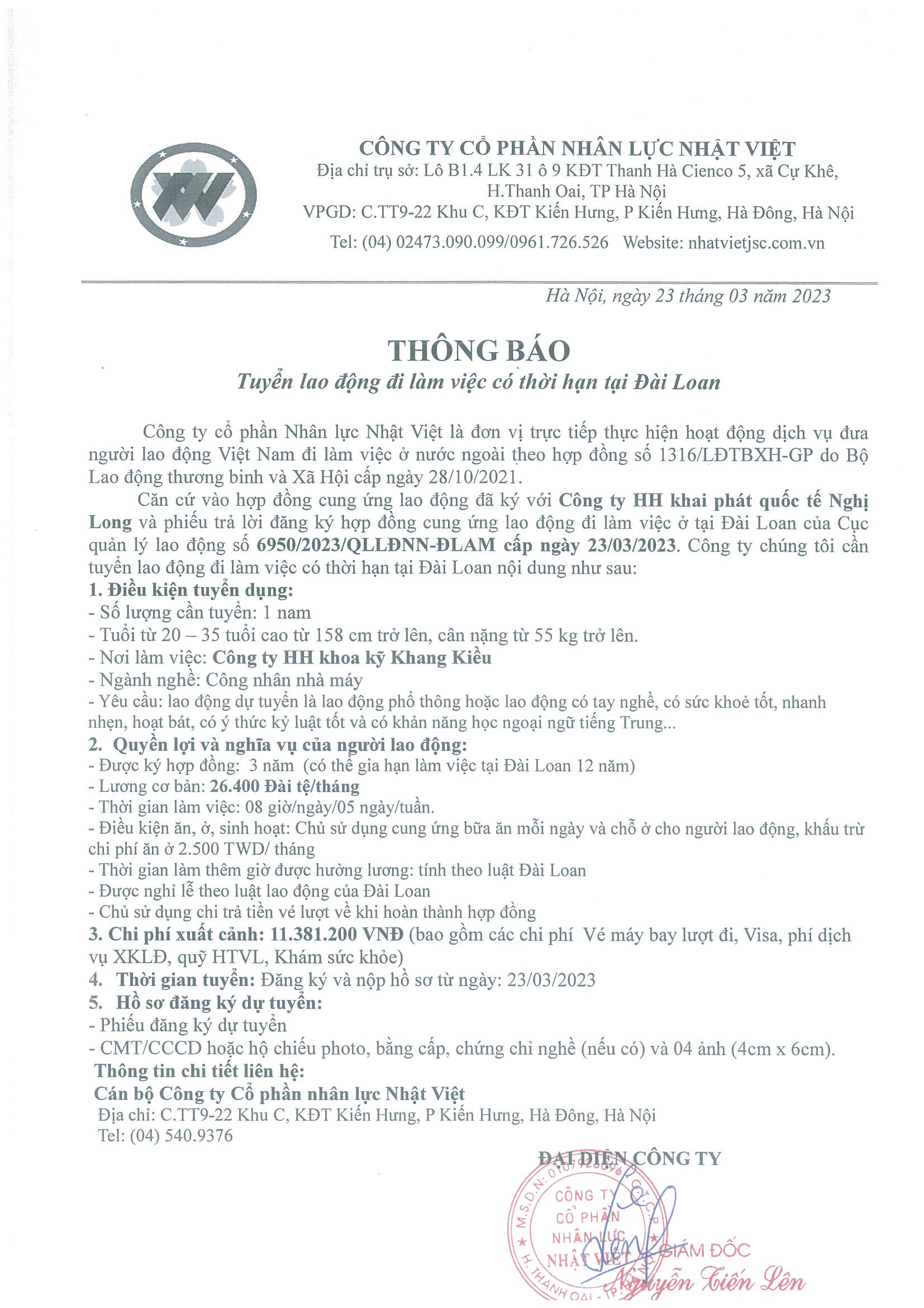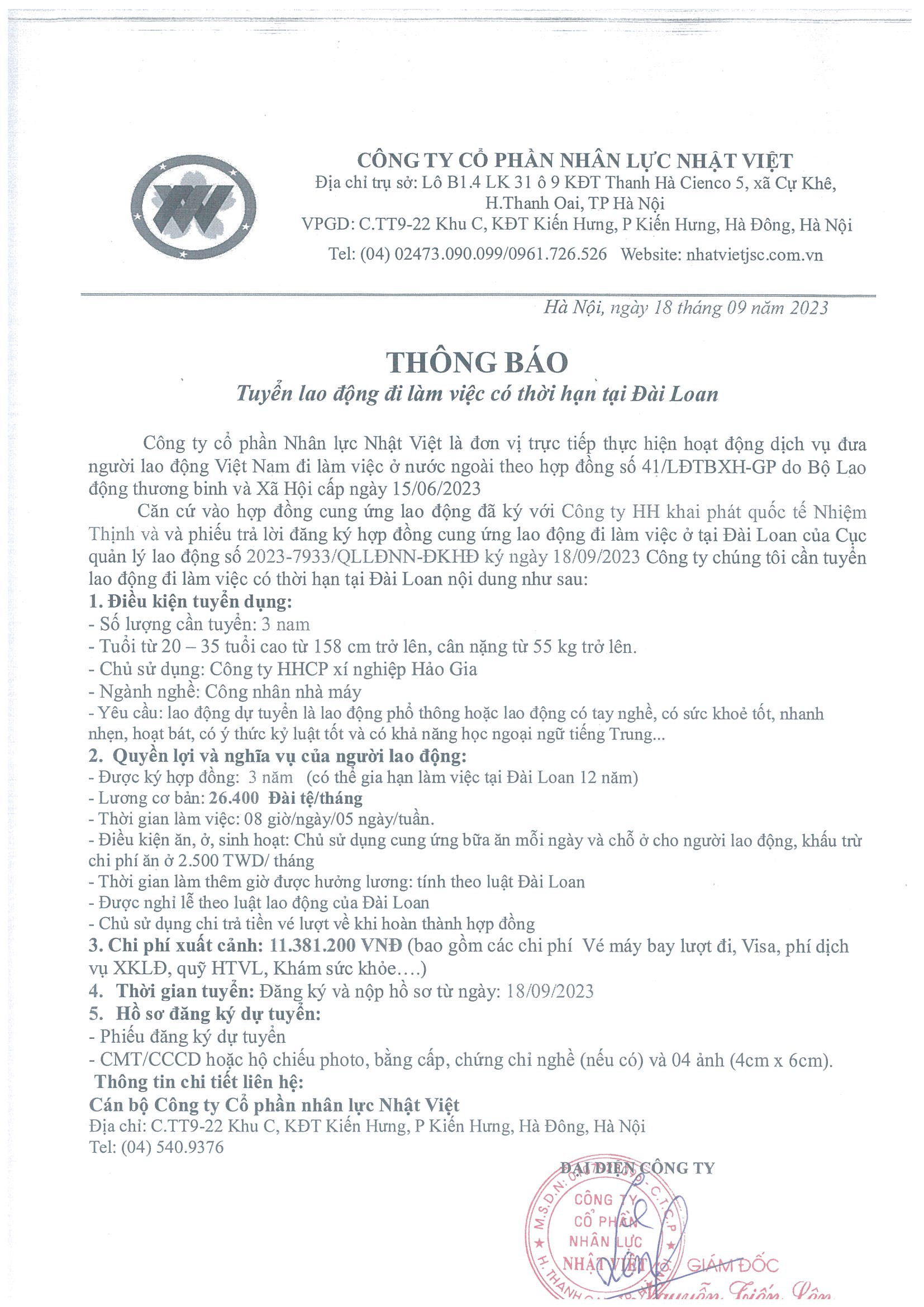 Đơn hàng XKLĐ Đài Loan