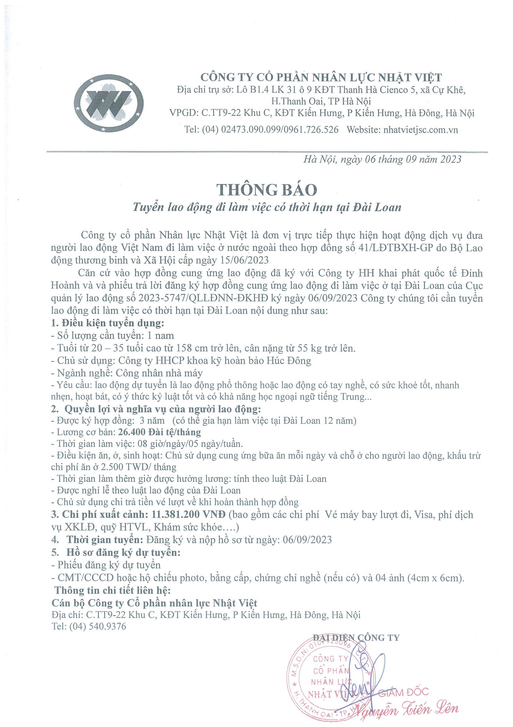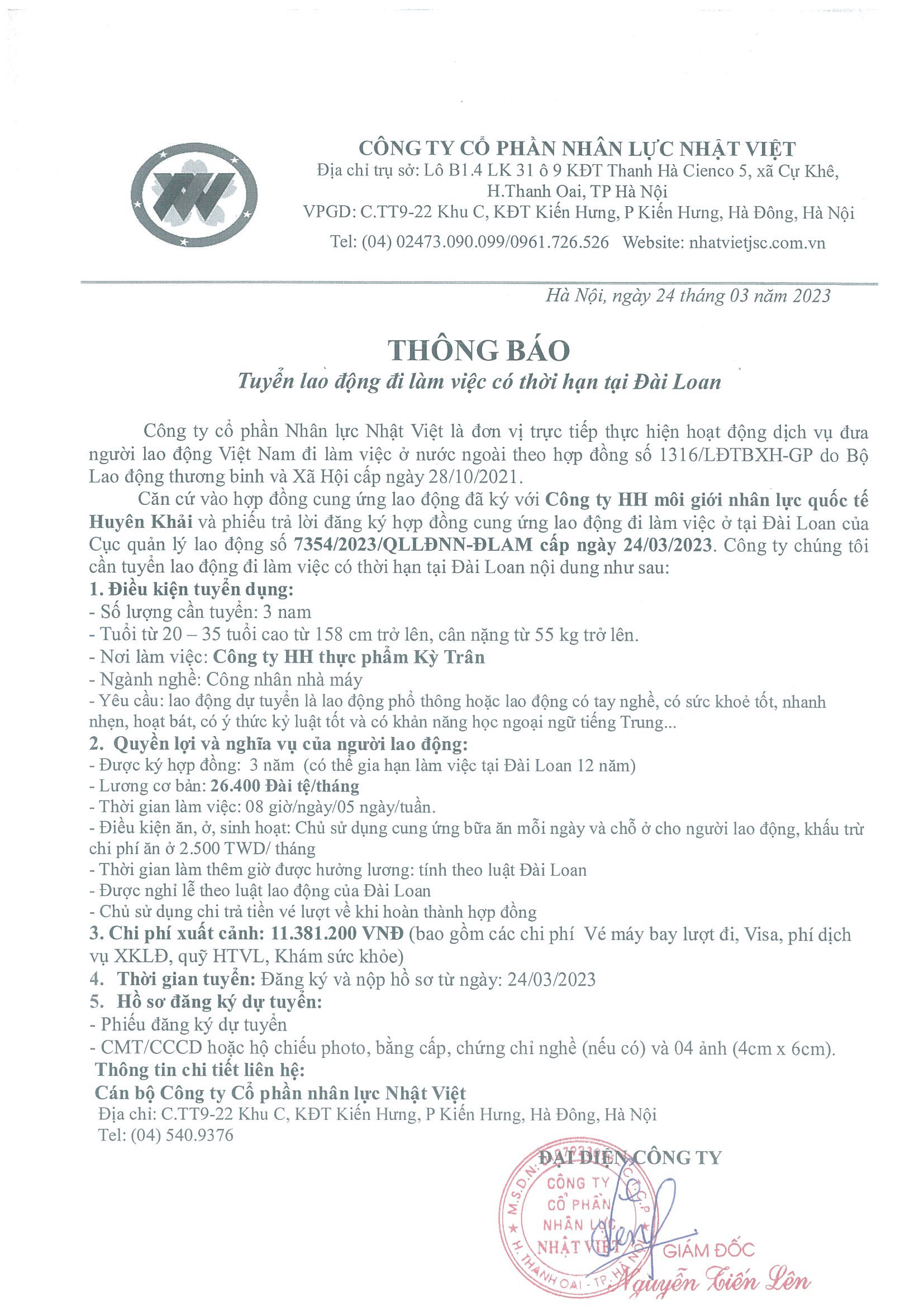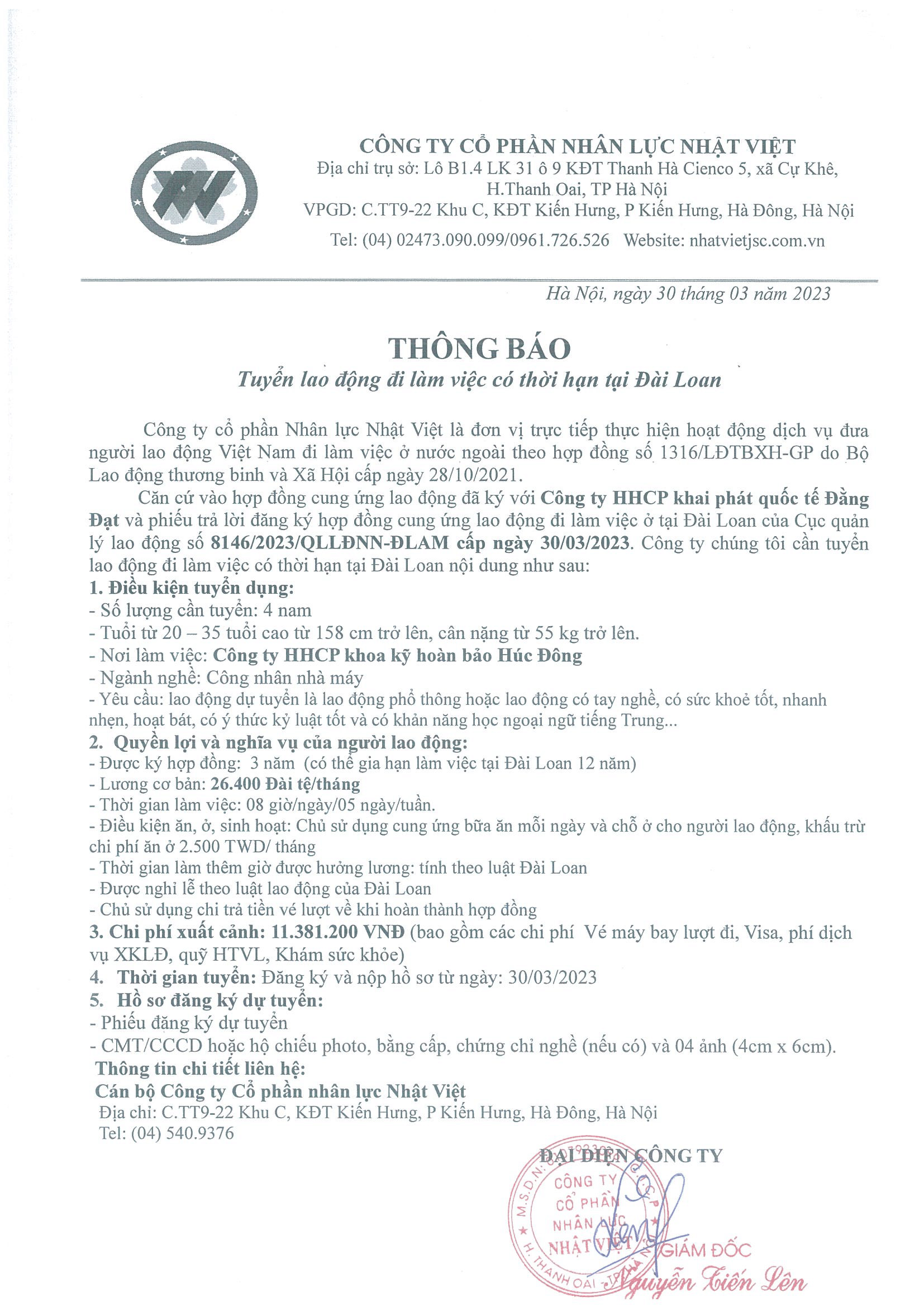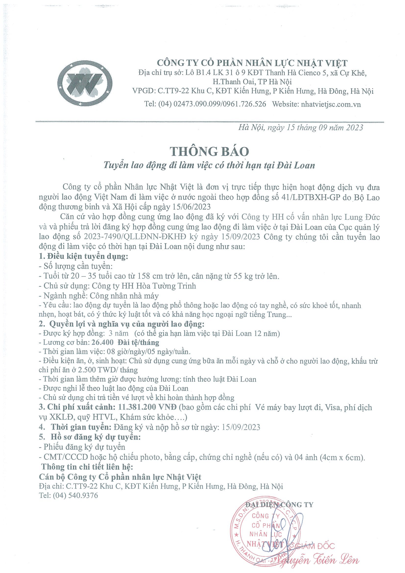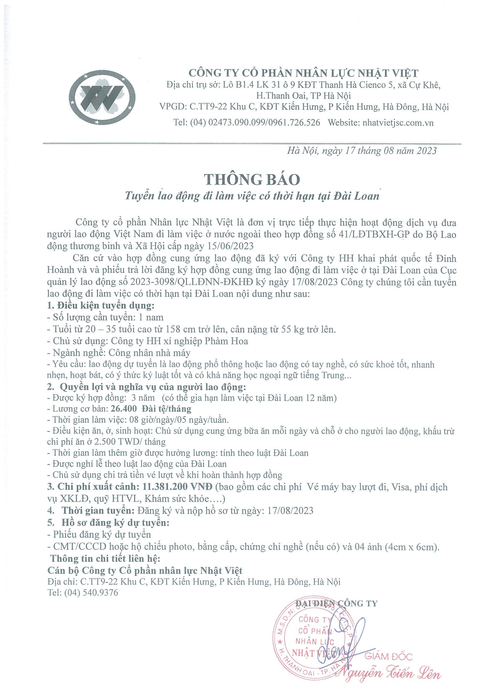 Đơn hàng XKLĐ Đài Loan