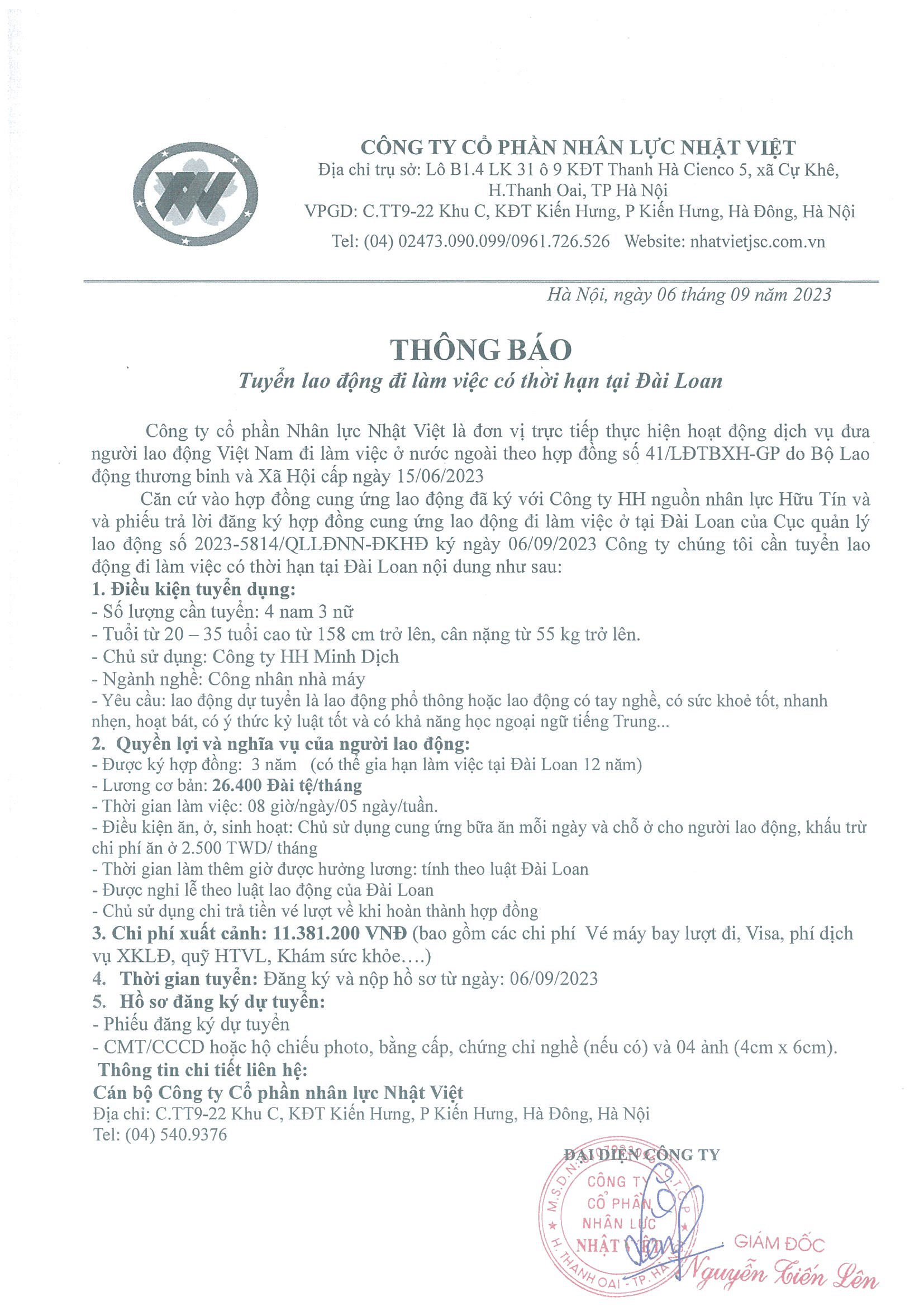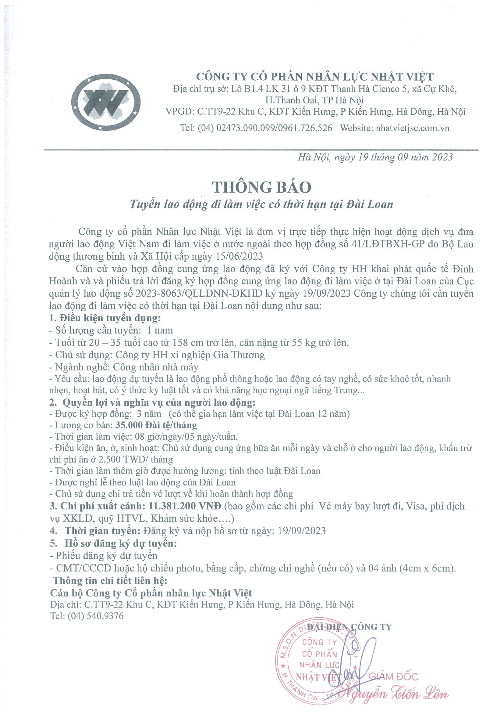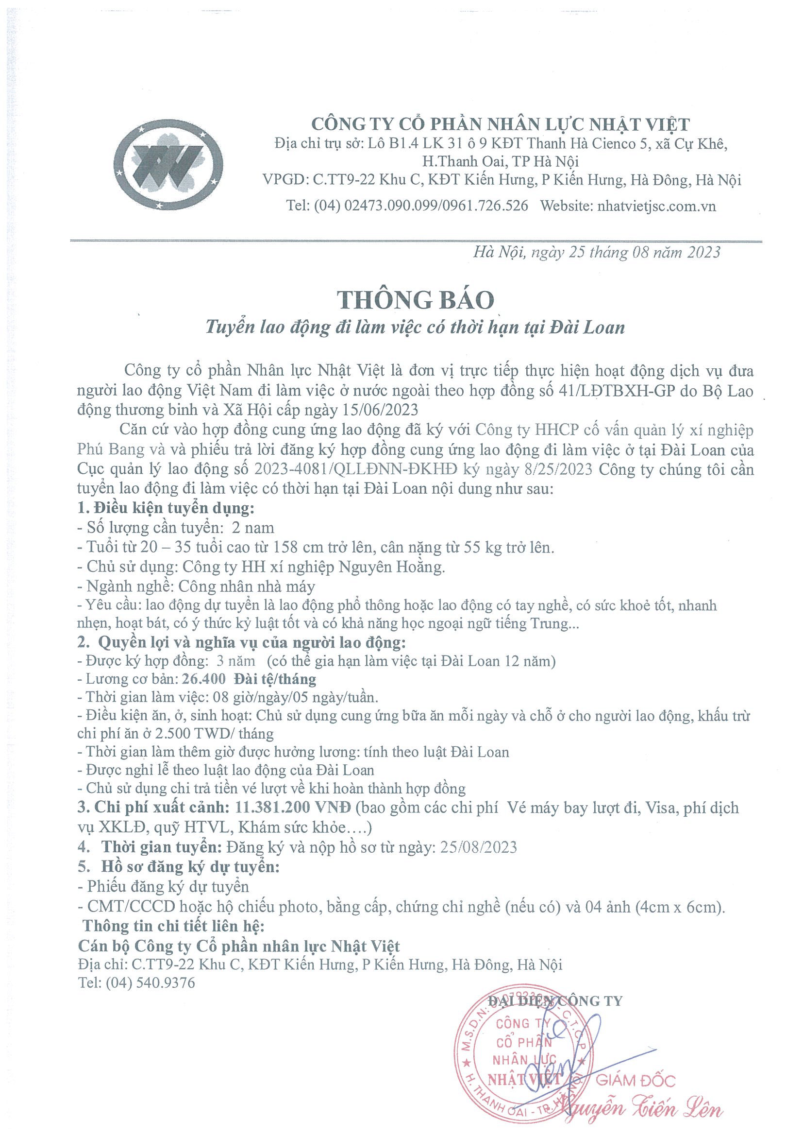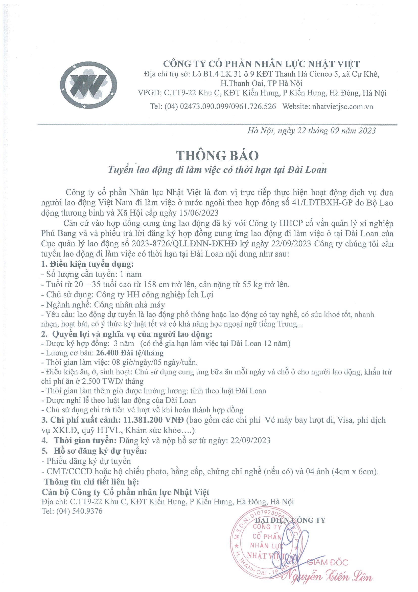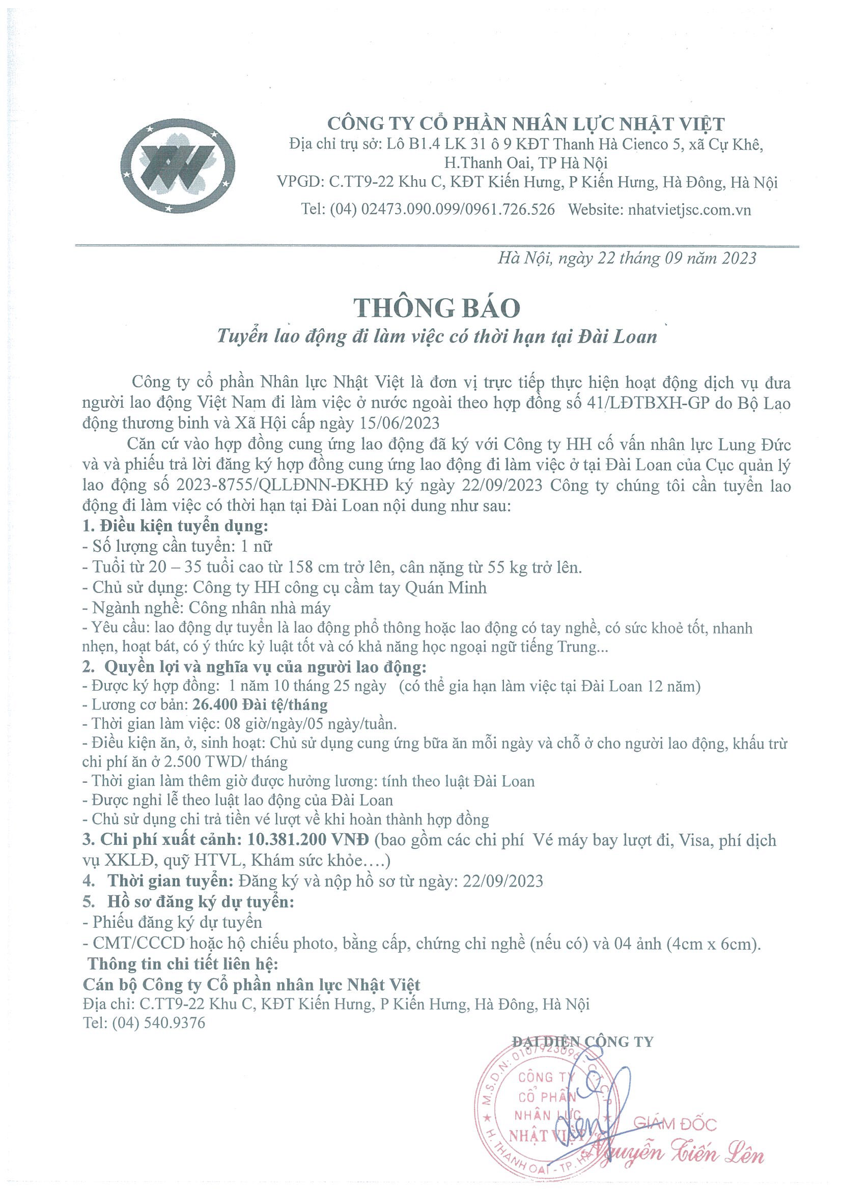 Đơn hàng XKLĐ Đài Loan