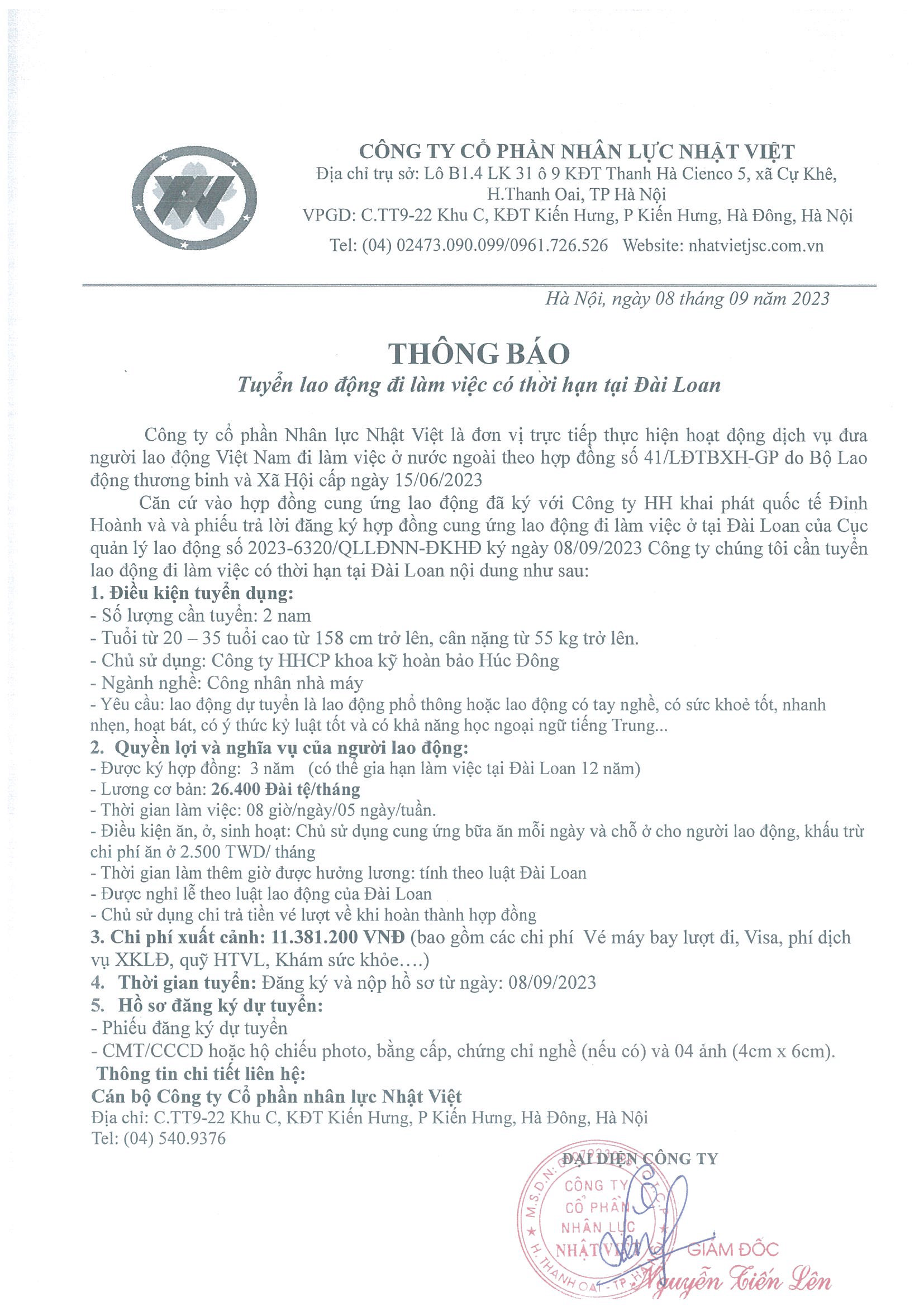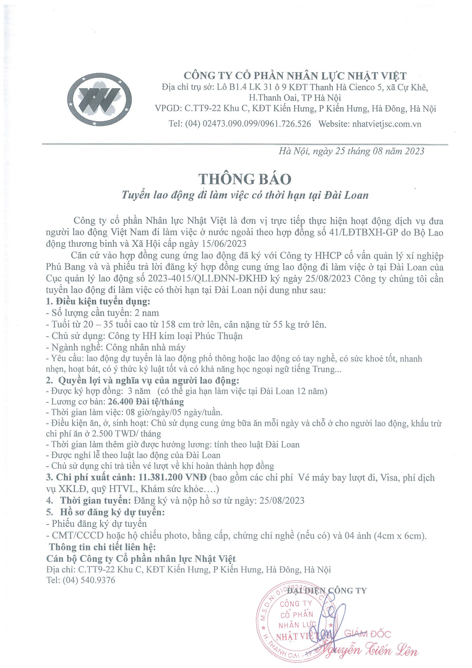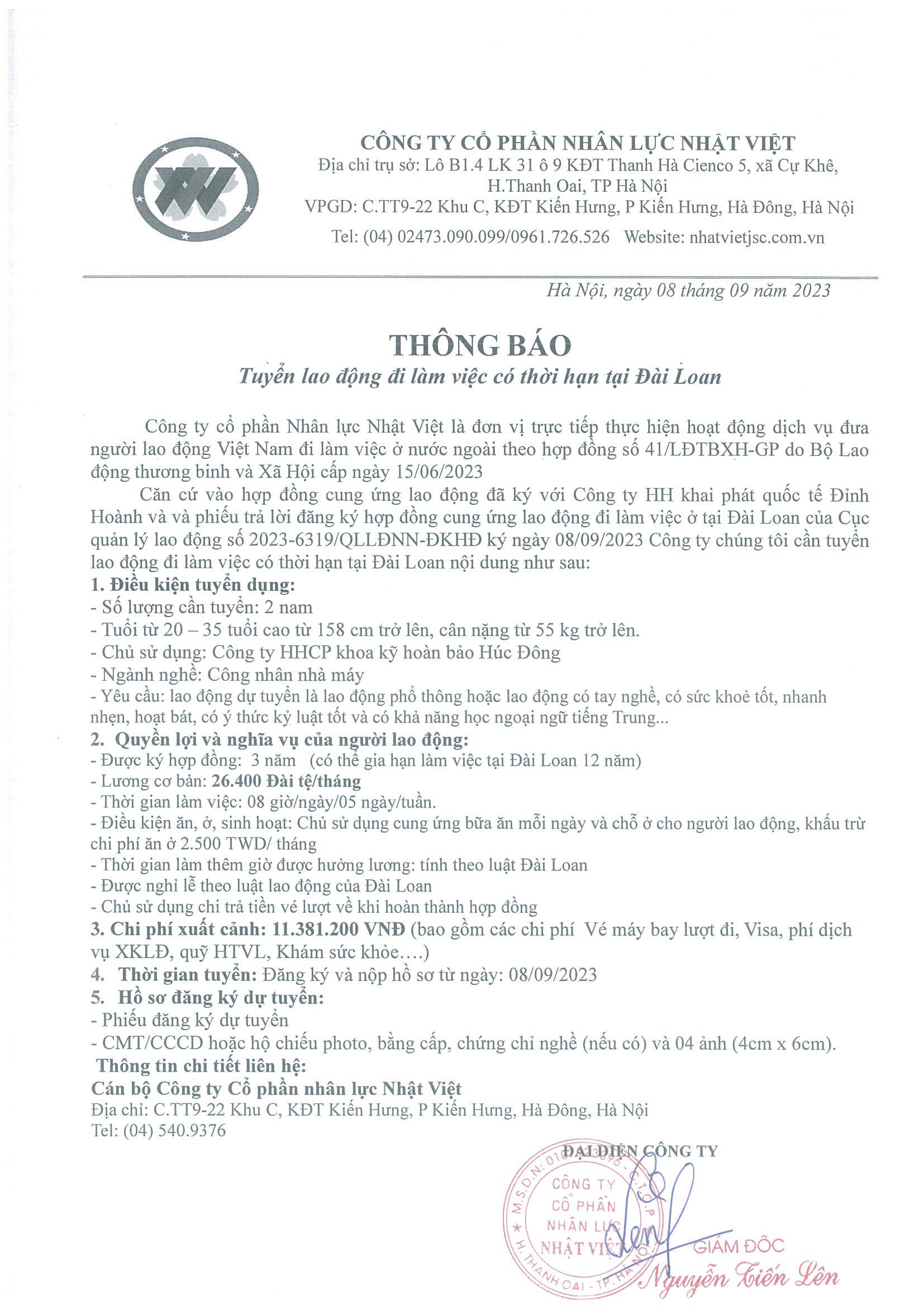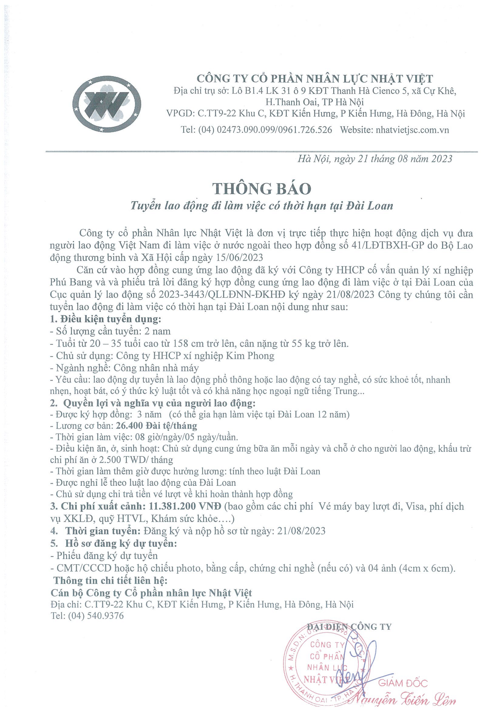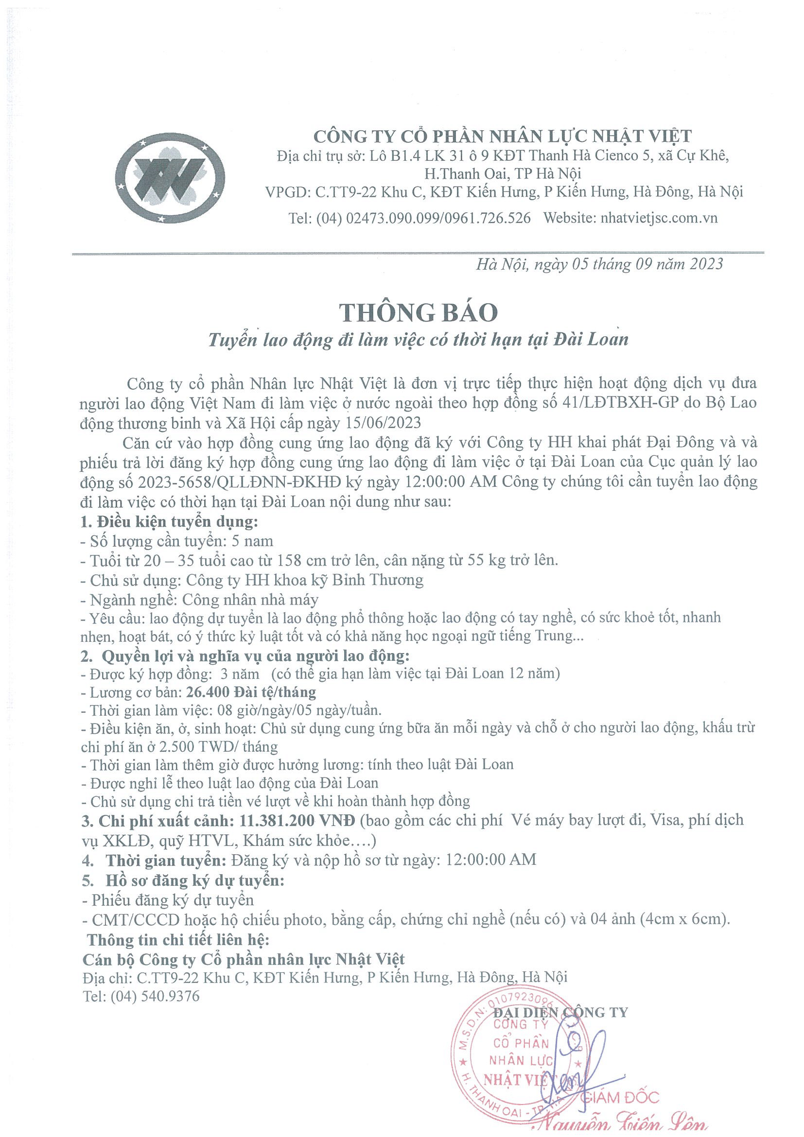 Đơn hàng XKLĐ Đài Loan